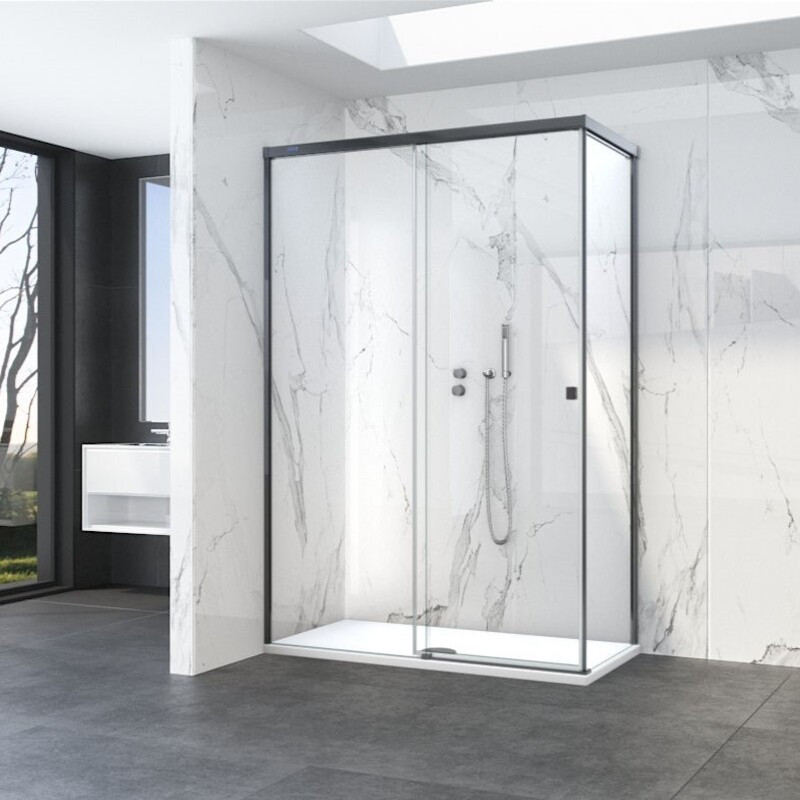 Mampara D1 Mode One frontal corredera + lateral fijo negro mate Duscholux