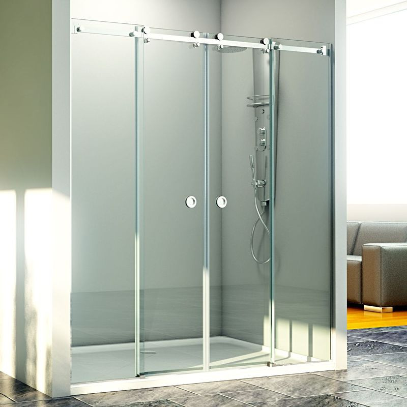Ducha frontal de 4 hojas (2 fijas + 2 correderas).  Exenta de guía inferior