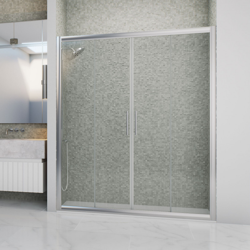 Façade de douche avec deux panneaux coulissants + deux panneaux fixes