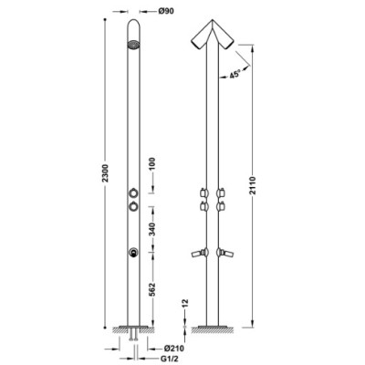 Colonne de douche double pour piscine en acier inoxydable 316 Tres