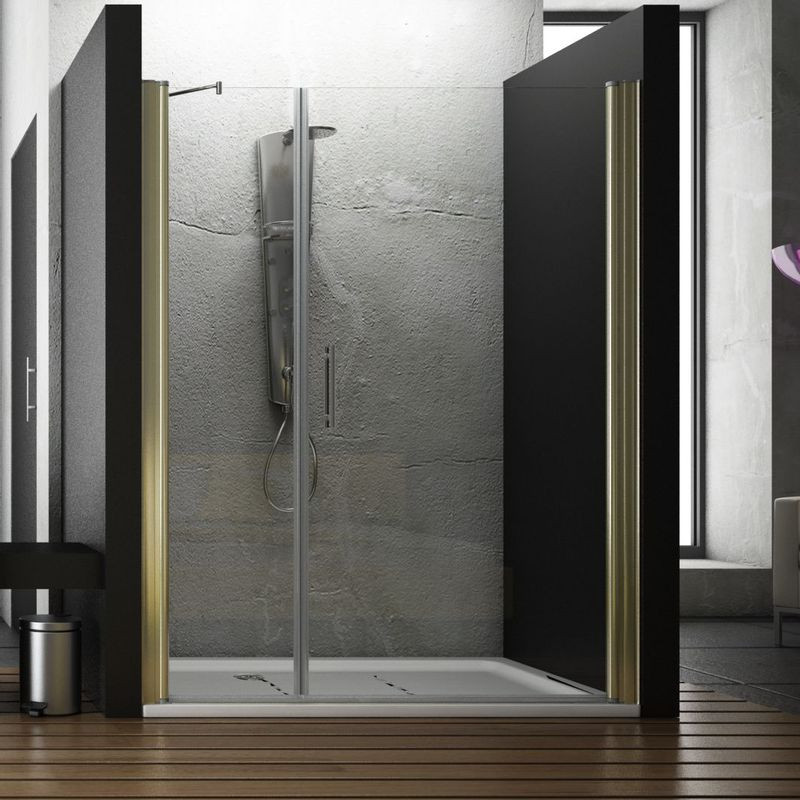 Cabine de douche frontale avec 1 panneau pliant s'ouvrant à 90º vers l'extérieur + segment fixe.